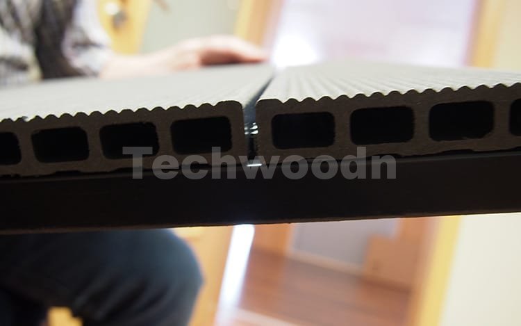 Les terrasses en WPC sont de plus en plus appréciées car elles empêchent la pourriture, n'ont pas besoin de peinture et sont plus durables que le bois dans les environnements extérieurs à long terme. Mais en fait, la facilité de traitement est également une caractéristique majeure des terrasses WPC. le platelage WPC fabriqué par Techwoodn n'a pas de couche de plastique extérieure et n'affecte pas les performances du pont après la coupe.