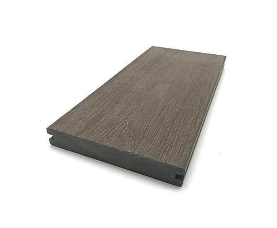 O deck composto sólido tampado de 21 mm x 150 mm é diferente da madeira maciça. A casca externa é de polímero plástico 100%, sem fibra de madeira. Após a instalação, exigem pouca manutenção, são muito duráveis e fáceis de limpar. Este modelo foi projetado para ser plano em ambos os lados. A superfície da placa pode ser tratada com vários grãos de madeira e cores. Tem uma aparência semelhante ao piso de madeira maciça. O peso do perfil é de 3,66kg/m.